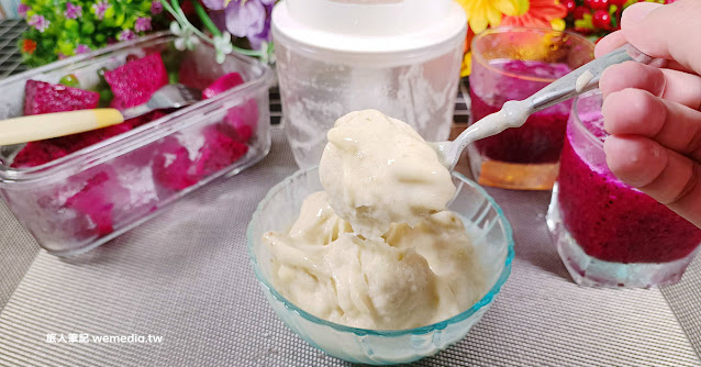冷凍看蕉也是輕輕鬆鬆就變成了香蕉冰淇淋,無糖、無色素、無香精,百分百純香蕉製作,大人、小人(故意寫錯)都可以儘情享用!